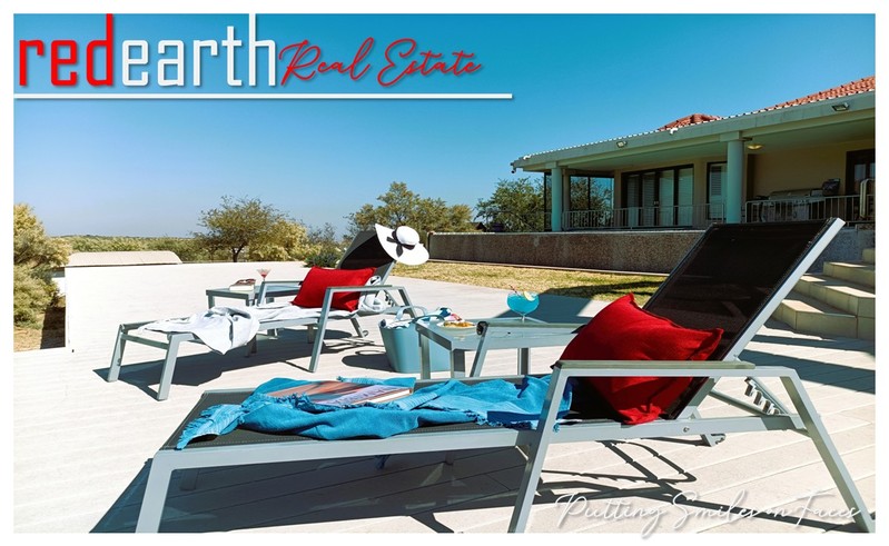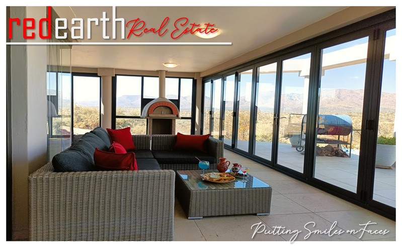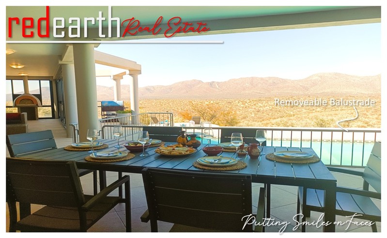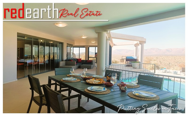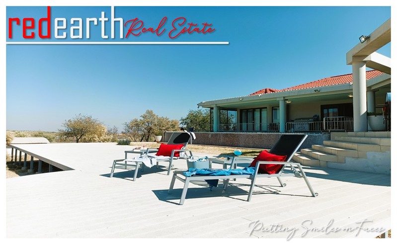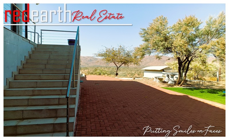 Harmonious Living in Nature's Embrace: This stunning Greek-Tuscan styled residence is nestled within the serene surroundings of the prestigious Finkenstein Estate, located just 15km east of Windhoek. The property offers an exceptional lifestyle, perfectly blending luxury and tranquillity.