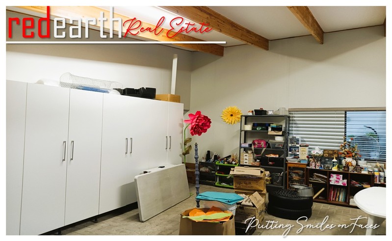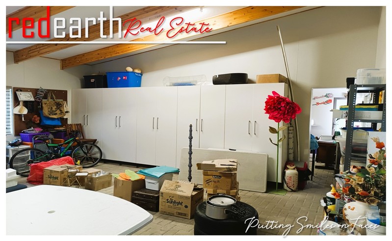 One room fitted with a sink and cupboards, providing practical workspace or storage.
